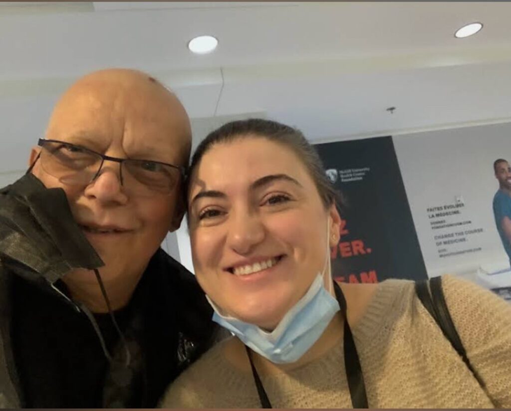In October 2021, Alex Villalta’s cardiologist noticed that Alex had lost a lot of weight in a very short time, and he was concerned. Alex was referred to the Cedars Cancer Centre at the McGill University Health Centre (MUHC), where, just 18 days later, he received a devastating diagnosis. “I was told I had an enormous tumour in my abdomen, that it was a very rare and aggressive type of cancer called Leiomyosarcoma, that it had metastasized, and that I probably had about 18 month to live.” he says.